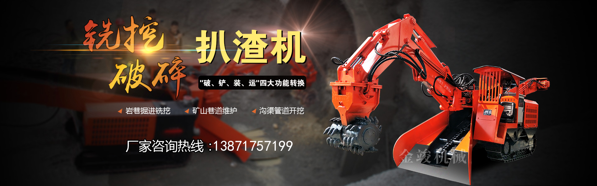 我公司是生產礦用扒渣機的專業廠家,生產各種礦用扒渣機、小型扒渣機、引水洞扒渣機、巷道扒渣機、隧道扒渣機、煤礦用防爆扒渣機、扒渣機配件、銑挖機,礦用出渣車、礦用三輪車/四輪車,軌道側卸式礦車,空壓機,礦用機械配件等。我公司擁有雄厚的科研實力,針對顧客及市場需求,定向技術開發,擁有扒渣機產品五大系列50多種型號??捎糜谏a作業空間為1.8m*1.8m以上含1.8m*1.8m的各種礦洞的采集掘進,從平巷采集掘進到25°以內斜井的采集掘進都有相匹配的產品。公司還可根據客戶的具體要求,訂做與之相匹配的設備.......